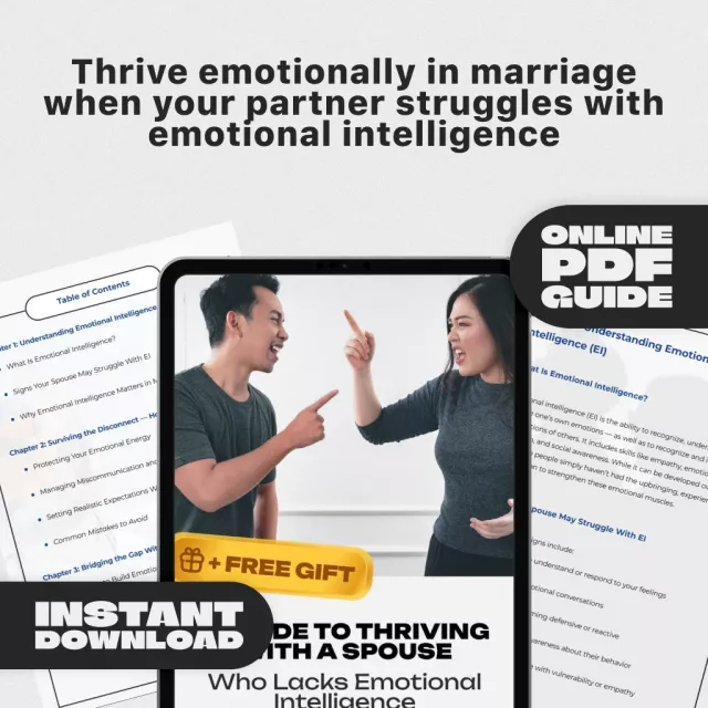 Are you emotionally drained from trying to connect with a partner who just doesn’t “get” your feelings? If you’re stuck wondering how to deal with a spouse with low emotional intelligence, this digital guide was made for you. A Guide to Thriving with a Spouse Who Lacks Emotional Intelligence offers practical, compassionate strategies to help you protect your peace, improve your communication, and build a healthier relationship—without losing yourself in the process.