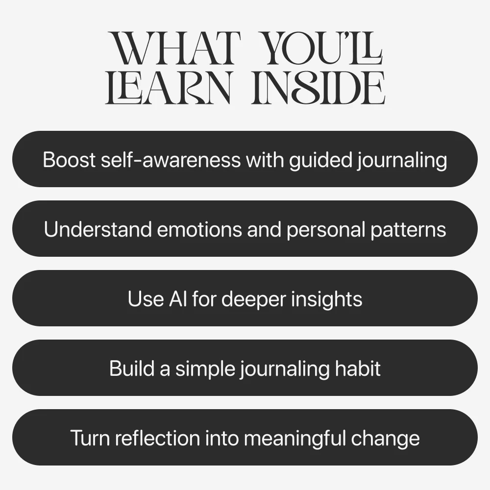 • Guidance on using AI tools to enhance your journal for self discovery process