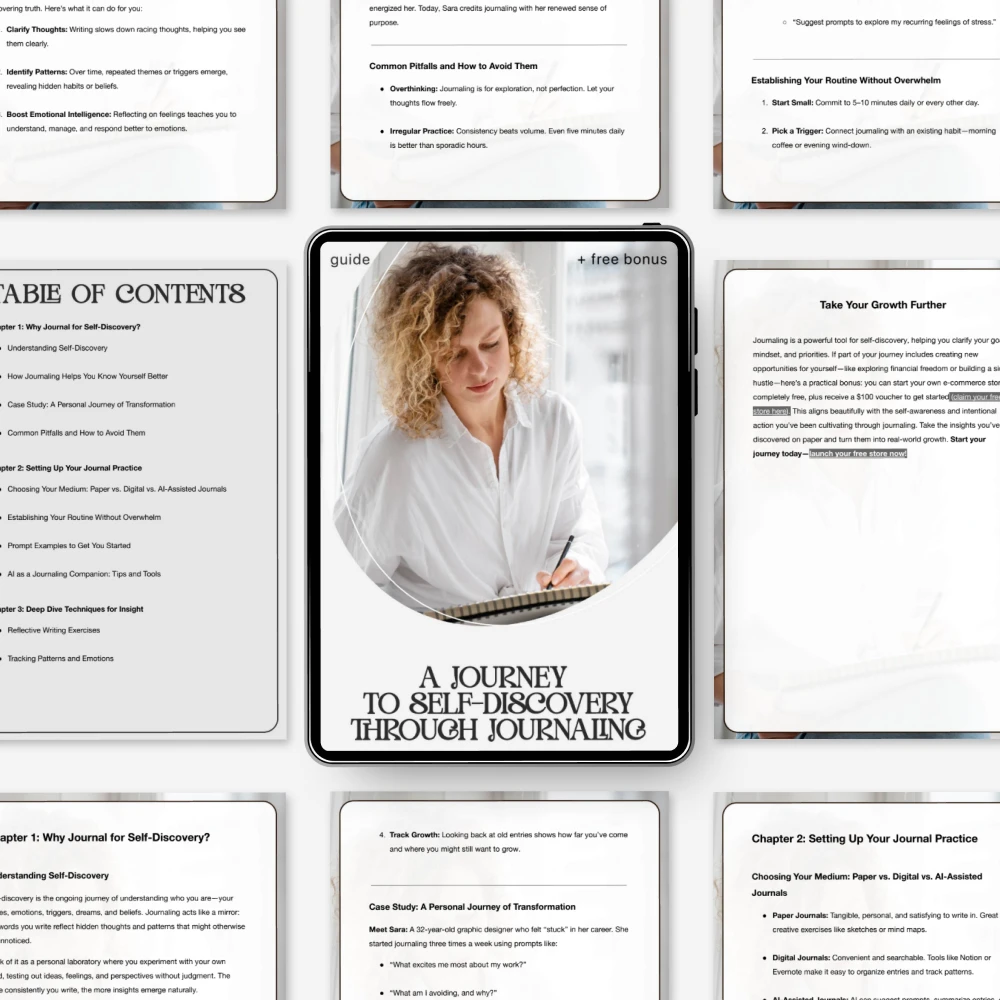 Unlike most journaling resources, this guide combines traditional self-reflection techniques with modern AI-supported methods. It blends psychology-based insights, real-life transformation stories, and practical tools into one comprehensive guide. Instead of just giving you blank pages, it teaches you how to think, reflect, analyze, and grow using your journal for self discovery in an intentional and results-driven way.