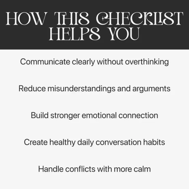This checklist is perfect for married couples, engaged partners, or anyone in a committed relationship who wants practical tools for how to keep communication healthy in marriage. It’s ideal for busy couples, long-distance partners, and those looking to reconnect emotionally.