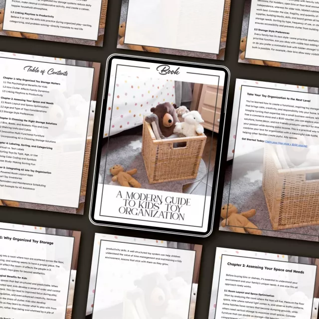 Unlike typical decluttering guides, “A Modern Guide to Kids’ Toy Organization” blends practical home design with the power of modern technology. You’ll not only master how to create a kids toy storage system that works for your home but also discover how to make organization enjoyable and lasting for your children. Every chapter is thoughtfully crafted for real families and real homes—no Pinterest perfection required!
