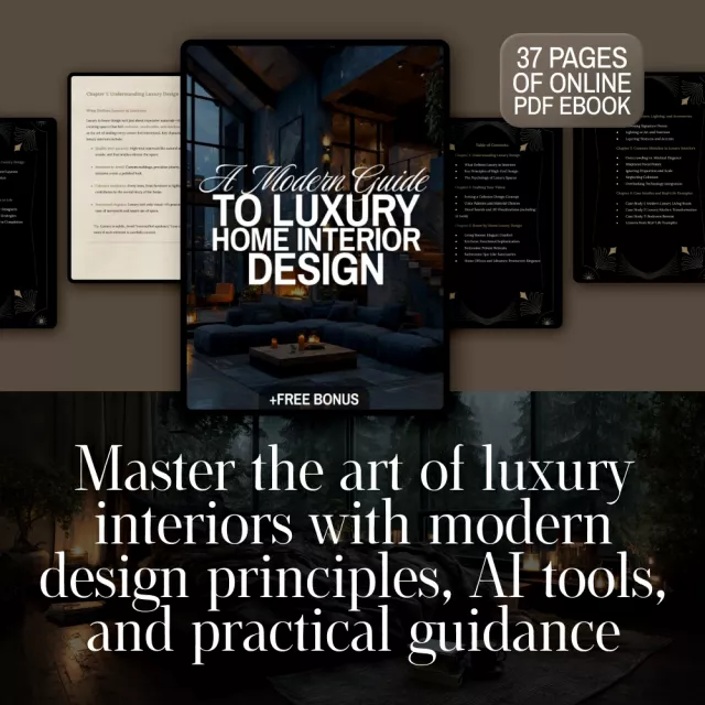 Transform your living space into a sanctuary of sophistication with A Modern Guide to Luxury Home Interior Design, a comprehensive eBook designed for homeowners, interior enthusiasts, and aspiring designers. Whether you’re starting fresh, upgrading a single room, or looking to elevate your entire home, this digital guide blends timeless design principles with cutting-edge trends and AI tools to help you create stunning, cohesive, and luxurious interiors. Unlike other generic guides, this resource offers both inspiration and practical steps, making it a must-have for anyone serious about achieving true elegance at home.