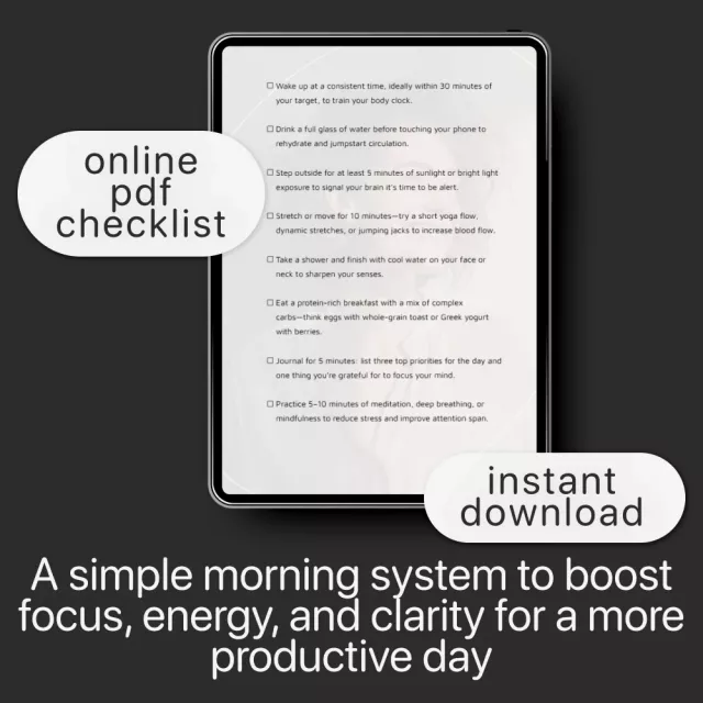 This digital checklist combines simplicity with proven mindset and productivity strategies. Instead of overwhelming you with long routines, it highlights impactful, manageable steps that integrate seamlessly into real life. It’s crafted to help you stay consistent—even on your busiest mornings—making it easier to build morning routines that fuel focus without feeling rigid or complicated.