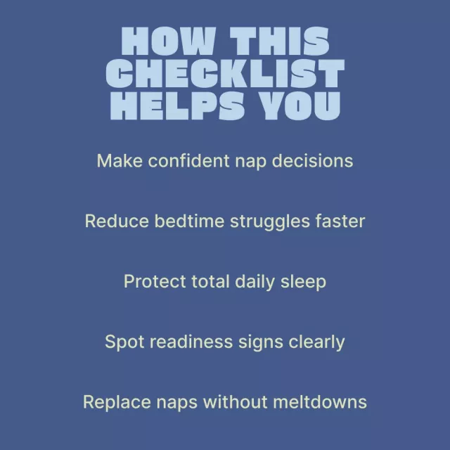 This checklist is made for parents of toddlers and preschoolers—especially ages 3 to 5—who feel stuck between dropping naps and protecting sleep. If naps feel unpredictable and bedtime has become stressful, this resource gives you clarity without pressure.