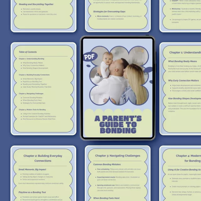 Unlike generic parenting resources, A Parent’s Guide to Bonding blends emotional understanding, real-life case studies, and innovative tools like AI-powered activity ideas. It meets modern parents where they are—offering flexible, thoughtful guidance that grows with your family.