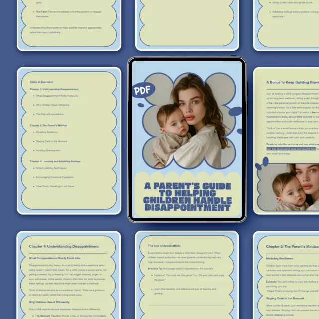 Watching your child struggle with disappointment can feel heartbreaking and confusing. You want to help, but in the moment, it’s hard to know what to say or do. A Parent’s Guide to Helping Children Handle Disappointment is a thoughtfully designed ebook that gives you calm, practical guidance for those tough emotional moments. Whether it’s losing a game, missing out on an opportunity, or facing everyday setbacks, this guide walks you step by step through how to help child deal with disappointment in ways that build resilience, confidence, and emotional strength.