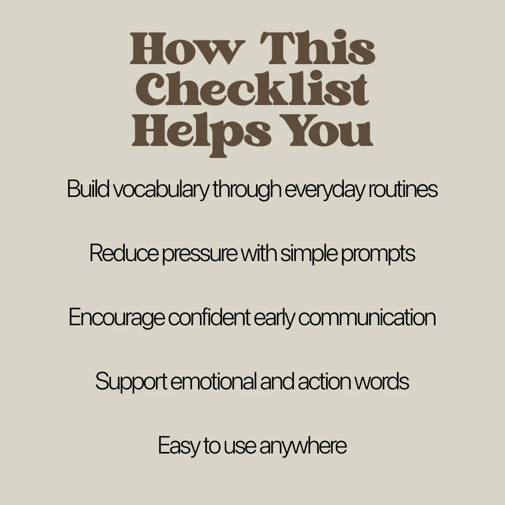 This checklist is ideal for parents, grandparents, nannies, and early childhood caregivers of toddlers who are beginning to talk or need a little extra language support. It’s especially helpful if you want practical guidance without overwhelming advice.