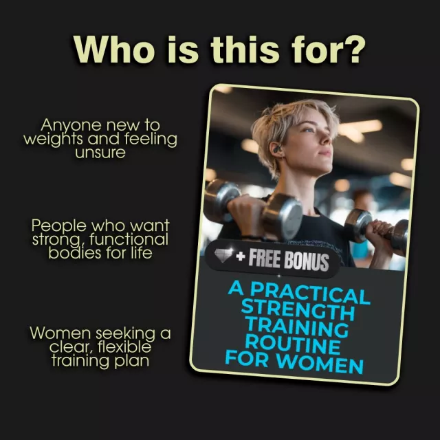 Wow, this strength training guide is a breath of fresh air! I've tried so many workout plans before and they all left me feeling overwhelmed. But not this one. It's simple, clear and super actionable - just what I needed to finally get started with lifting weights. The best part? It's designed specifically for women like me who want to build strength but aren't sure where to start or how to do it right. I love that it breaks down the science of lifting into easy-to-understand steps that fit into my busy life. Plus, the mindset strategies have really helped me overcome gym anxiety and celebrate every small win along the way 🎉 Now, whenever I walk into a gym, I feel confident knowing exactly what exercises to do and why they're important for my body.