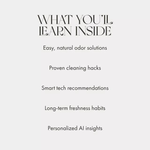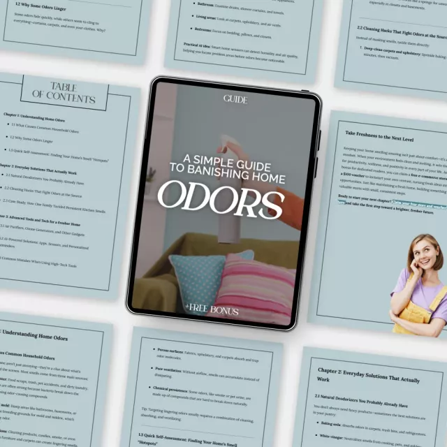 Unlike generic cleaning guides, A Simple Guide to Banishing Home Odors combines real-world cleaning strategies, science-backed odor solutions, and even AI-powered tips to help you stay ahead of unwanted smells. It’s a practical, actionable resource that fits your lifestyle—no fluff, no jargon, just proven results.