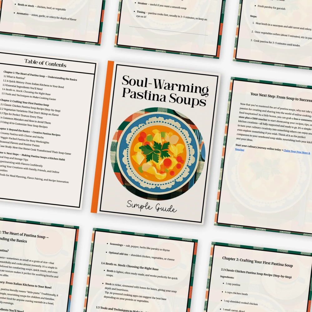 Bring comfort, simplicity, and flavor to your kitchen today. Download A Simple Guide to Soul-Warming Pastina Soups now and start creating bowls of joy that warm the body and the soul.