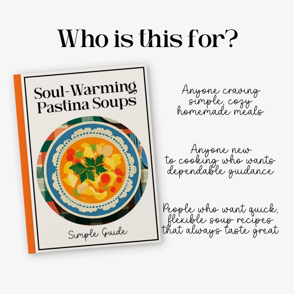 This guide is perfect for home cooks, busy individuals, beginners, food lovers seeking comfort dishes, and anyone who wants to master how to make pastina soups without overwhelm. It’s also ideal for digital cookbook collectors and those looking for a warm, heartfelt culinary experience.