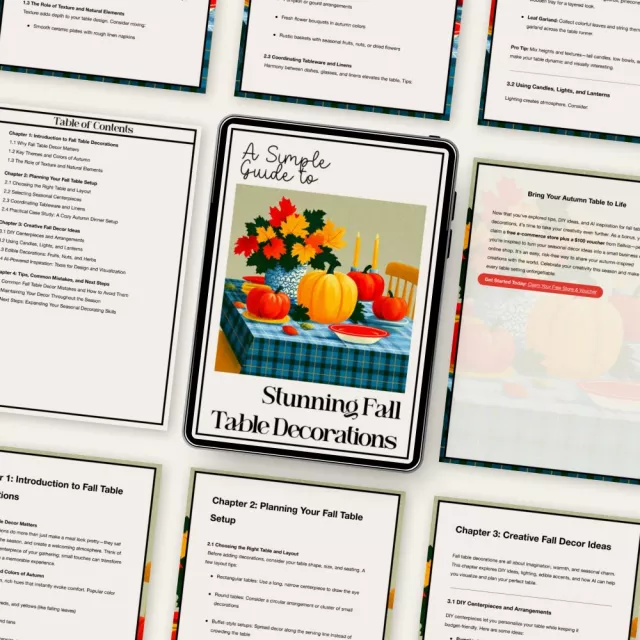 This digital guide goes beyond inspiration—it teaches you the “why” behind beautiful fall table decorations. With practical examples, step-by-step advice, and even AI-powered design tips, you’ll create looks that feel personal, stylish, and achievable. Whether your style is rustic, modern, elegant, or cozy, you’ll find ideas that fit you perfectly.