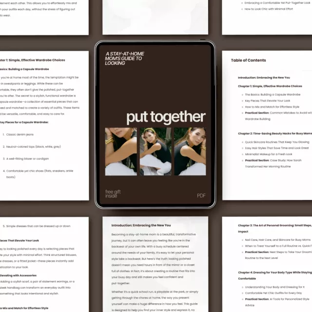 This guide is for stay-at-home moms who want to look put together without pressure, trends, or complicated systems. Unlike generic fashion or beauty eBooks, A Stay-at-Home Mom’s Guide to Looking Put Together blends mindset, wardrobe, grooming, and real-life case studies into one supportive, actionable resource. It’s not about changing who you are—it’s about helping you show up as your best self with minimal effort.