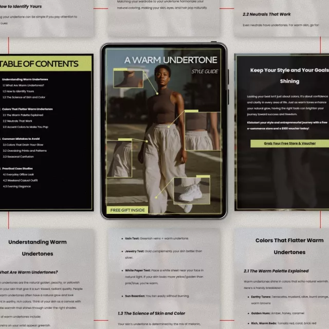 This ebook is perfect for anyone with warm undertones who wants a cohesive, flattering wardrobe, from professionals and creatives to minimalists building a capsule closet. Unlike generic color guides, A Warm Undertone Style Guide combines science, real-world outfits, and modern AI styling tools into one practical resource, making it both timeless and forward-thinking.