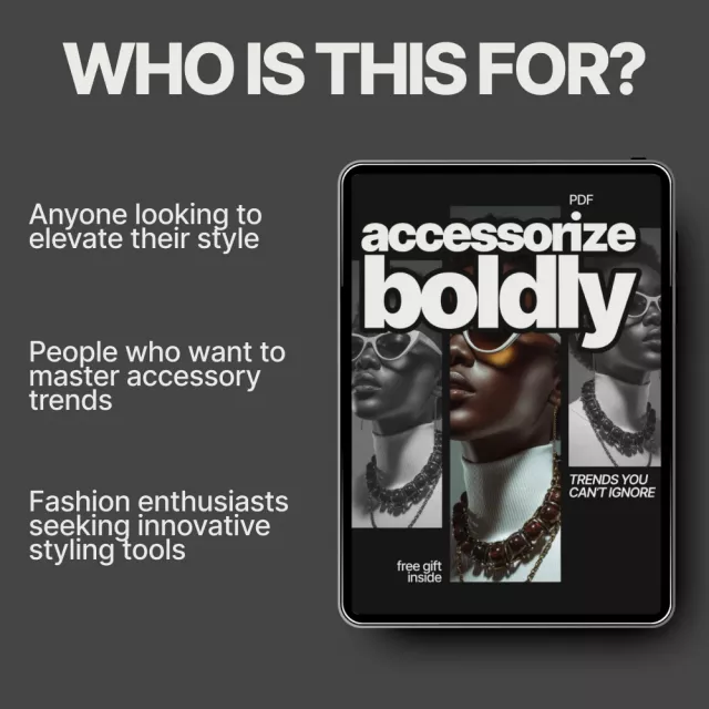 Ready to transform your accessory game? Download “Accessorize Boldly: Trends You Can’t Ignore” now and take the first step toward becoming the trendsetter you’ve always dreamed of. This guide isn’t just about following trends – it’s about creating a style that is bold, innovative, and all your own. Don’t miss out – elevate your wardrobe and accessory styling today!