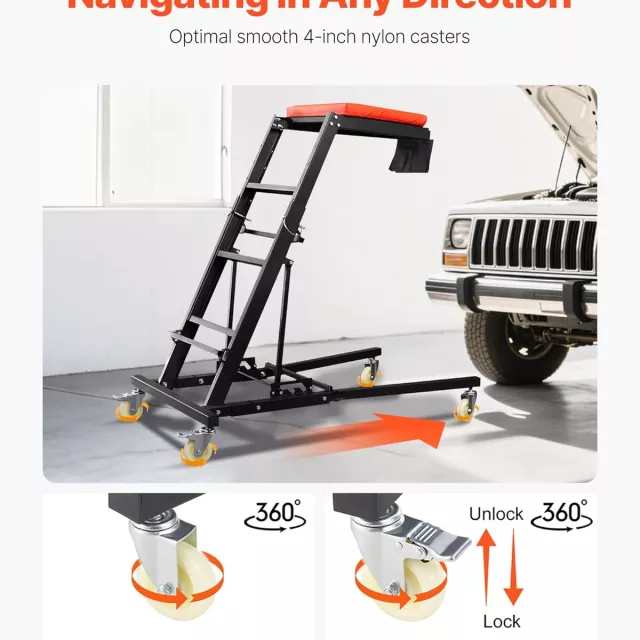 Built with heavy-duty Q235A steel and reinforced bolts, this creeper can support up to 400 lbs, providing a stable and reliable platform for all your elevated repair tasks. Its H-shaped base minimizes wobbling, ensuring safety while working at higher heights. The foldable design adds convenience without sacrificing strength.