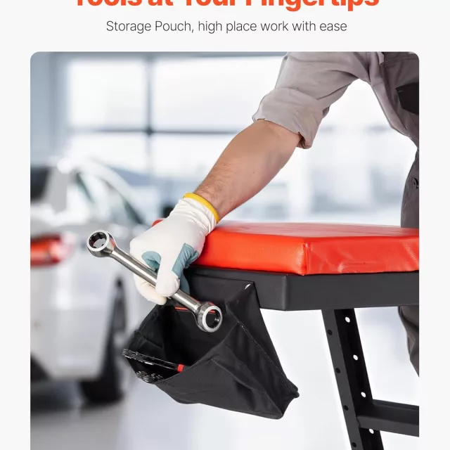 The topside creeper features a thick 2-inch cushion measuring 12.4 x 18 inches, ensuring comfort during extended use. An integrated tool pouch keeps essential tools within easy reach, allowing you to stay productive without constant bending or stretching.