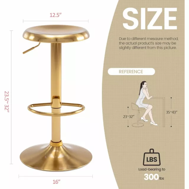 Elevate the style and comfort of your space with this set of two adjustable bar stools. With a sleek, contemporary design featuring gold-brushed metal and a round, concave seat, these stools are the perfect addition to your kitchen island, home bar, or pub area. Designed to blend retro charm with modern simplicity, these stools are as fashionable as they are functional. Whether you’re enjoying a meal at your kitchen counter or entertaining guests at your home bar, these stools make every moment feel special.