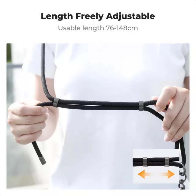 This strap is built with practicality and performance in mind. Made from high-quality materials, it offers reliable strength while remaining lightweight enough for long wear. The adjustable length ensures a custom fit for any body type, while its sleek black design blends seamlessly with your gear. Engineered with a sturdy thread and expansion options, it keeps your Pocket 3 camera safe and steady during active use.