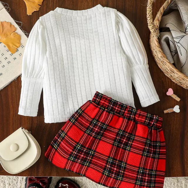 Adorable Toddler Girl 2PCS Outfit – Long Sleeve Knit Top & Bowknot Skirt