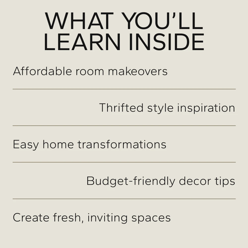 I love practical resources and this one really delivers. The instructions are broken down into steps that even a total beginner can handle. I started with the section on refreshing a room for less and was surprised by how much impact small changes make. Swapping hardware, adding layered lighting, and rearranging artwork made my dining area feel brand new. The thrifted decor ideas are my favorite part. They explain how to identify timeless pieces and blend them with modern items so nothing feels mismatched. I also appreciated the emphasis on sustainability, reusing and upcycling instead of buying everything new. The checklists keep you focused and motivated. Just actionable advice you can apply immediately. Because it is digital, I could bookmark pages and revisit them while shopping. My space now feels curated and cozy without overspending.