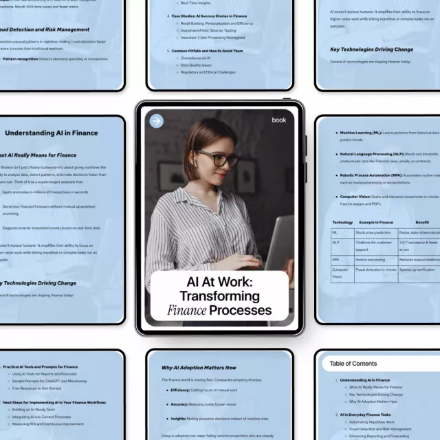 Unlike generic AI overviews, this ebook focuses specifically on finance workflows with relatable examples, step-by-step insights, and actionable tools you can use right away. It’s built for clarity, speed, and real-world impact.