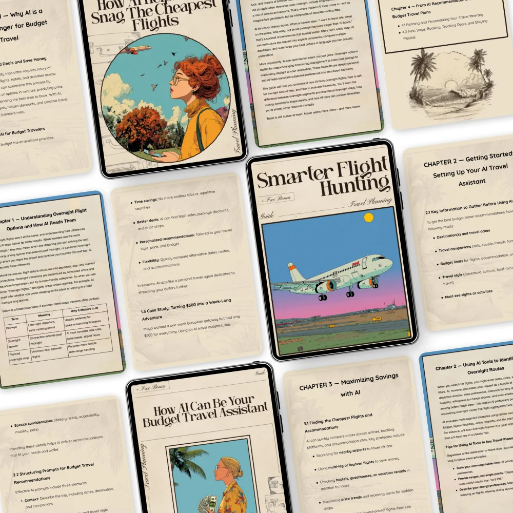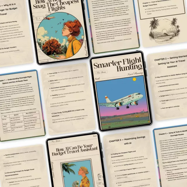 Unlike other travel guides, this bundle combines multiple digital resources into one actionable toolkit. With easy-to-follow guides, checklists, and real-world strategies, it doesn’t just explain the theory—it gives you the tools to take action immediately. Using AI, you can finally master the art of finding the cheapest flights and maximize your travel budget.