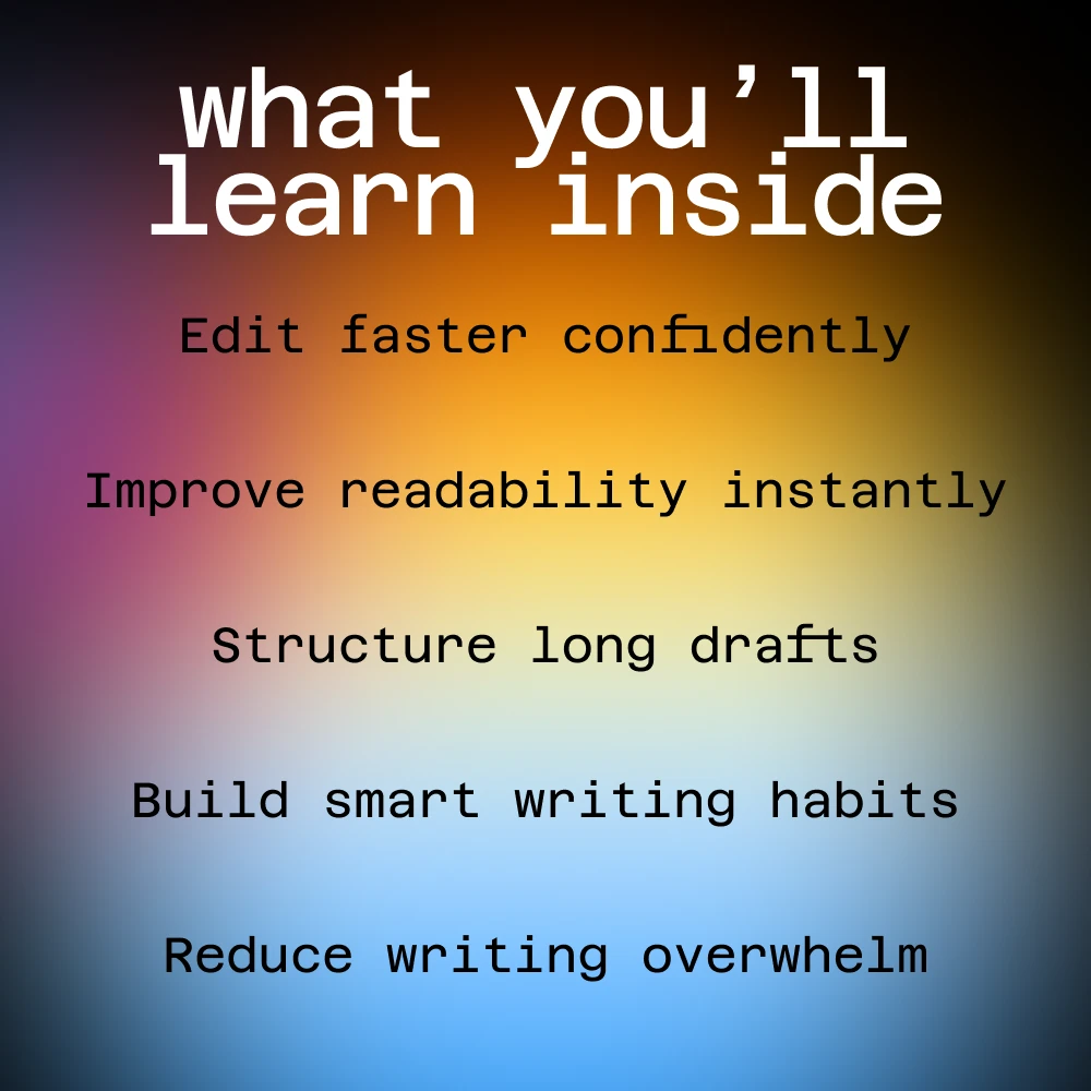 Unlike scattered AI tips or overly technical guides, this toolkit focuses on real-world writing situations. Each resource is designed to be used immediately, even if you’re new to AI. You’ll learn how to collaborate with AI while keeping your unique writing style intact.