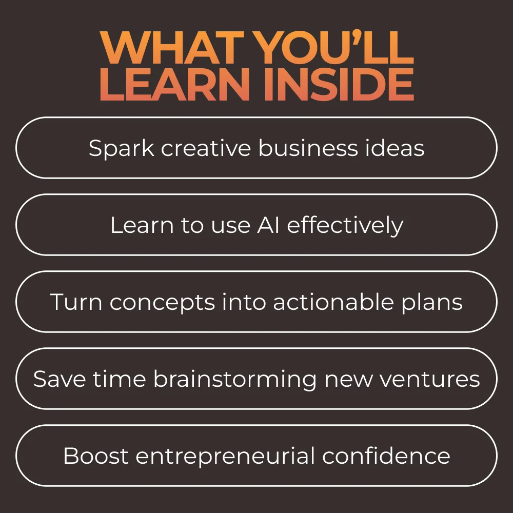 • Practical Guidance: Learn exactly how to use AI for generating business ideas and turn concepts into actionable plans.