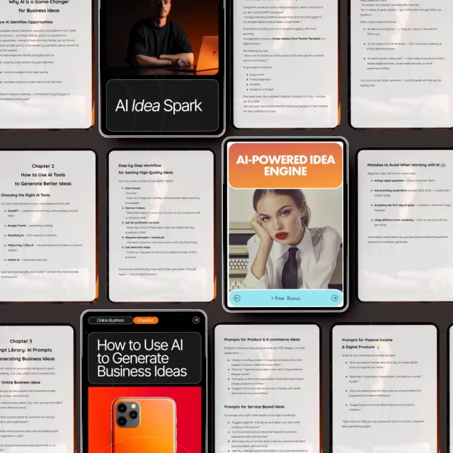If you’ve ever struggled with finding your next business idea, this bundle is for you. It’s ideal for creative thinkers, aspiring entrepreneurs, freelancers, and anyone interested in learning how AI can fuel business innovation. Unlike other generic idea guides, this bundle combines AI tools, guided exercises, and practical advice, giving you a complete system to generate business ideas that work.