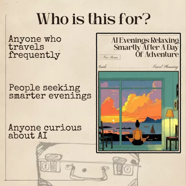 Unlike generic travel guides or relaxation tips, AI Evenings: Relaxing Smartly After a Day of Adventure combines the power of AI with practical, easy-to-follow strategies. It’s not just a guide or checklist—it’s an interactive resource that adapts to your lifestyle, offering personalized evening experiences wherever your adventures take you.