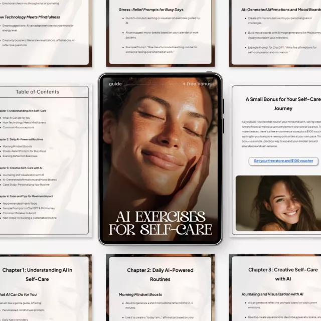 If you’ve ever wished for a more personalized, calming, and consistent self-care practice, AI Exercises for Self-Care is your new go-to resource. This beautifully structured digital guide teaches you how to use intelligent tools to support your mental, emotional, and creative well-being without feeling overwhelmed or “too techy.” Designed for real people with busy lives, it shows you how to build sustainable AI exercises for self-care routines that feel natural, supportive, and aligned with your lifestyle.