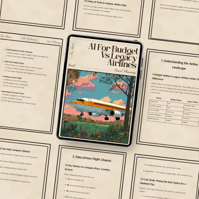 Make smarter, stress-free flight decisions with AI for Budget vs Legacy Airlines, your essential digital guide designed to help travelers confidently compare airline options in minutes. Whether you’re planning a last-minute getaway or mapping out a big trip, this resource shows you exactly how to use ai to compare budget vs legacy airlines so you can find the best value every time. Clear, practical, and beginner-friendly, this guide transforms complicated airline research into simple steps anyone can follow.