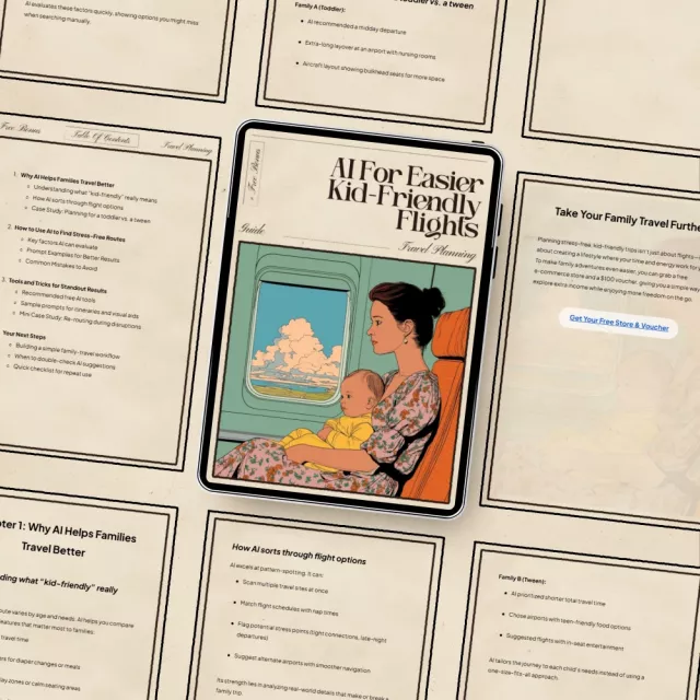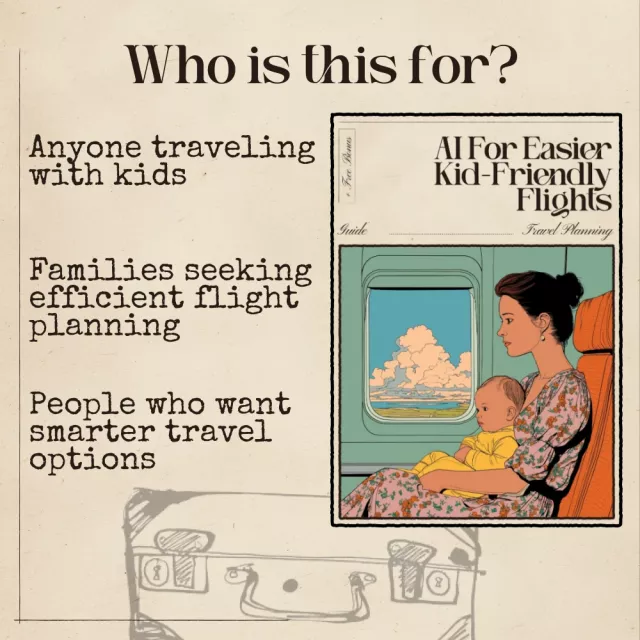 Traveling with kids can be a challenge, but finding the right flight doesnโt have to be. With “AI for Easier Kid-Friendly Flights,” youโll unlock the power of AI to find the perfect, stress-free flight routes that cater to your family’s unique needs. This comprehensive digital guide walks you through how AI can take the guesswork out of planning flights, saving you time, effort, and potential frustration. Whether you’re traveling with a toddler or a tween, this guide helps you use AI tools to streamline your flight planning and keep your journey smooth and enjoyable.