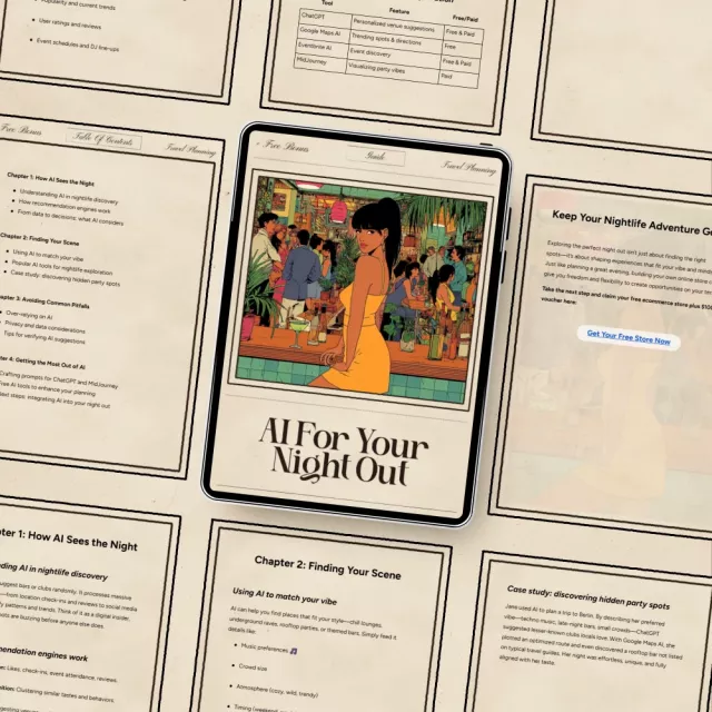With the “AI for Your Night Out” guide, you’ll never struggle to find the perfect place to party again. Take your nightlife planning to the next level and let AI do the heavy lifting. Download the guide today and start discovering your next unforgettable night out!