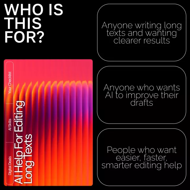 This digital checklist is perfect for writers, bloggers, students, teachers, content creators, business owners, and anyone who regularly edits long texts and wants to use AI more strategically.