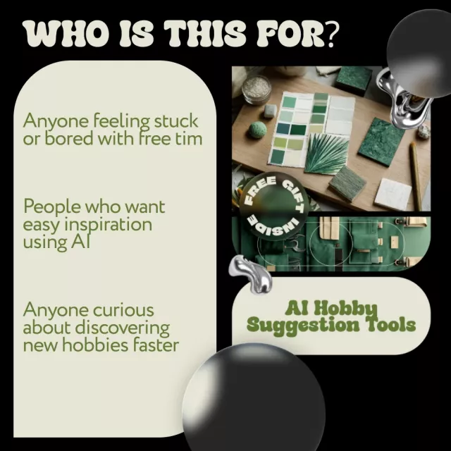This ebook is perfect for beginners exploring new interests, busy adults looking for efficient inspiration, creatives seeking fresh ideas, and anyone curious about using ai hobby suggestion tools to improve their personal life.