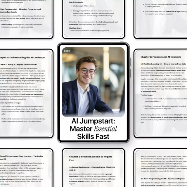 AI Jumpstart: Master Essential Skills Fast is a practical, beginner-friendly ebook designed to help you understand artificial intelligence without overwhelm. If you’ve been curious about AI but unsure where to start, this guide breaks everything down into clear, actionable steps. Instead of drowning you in jargon, it focuses on clarity, real-world examples, and the ai skills to learn first so you can build a strong foundation quickly and confidently.