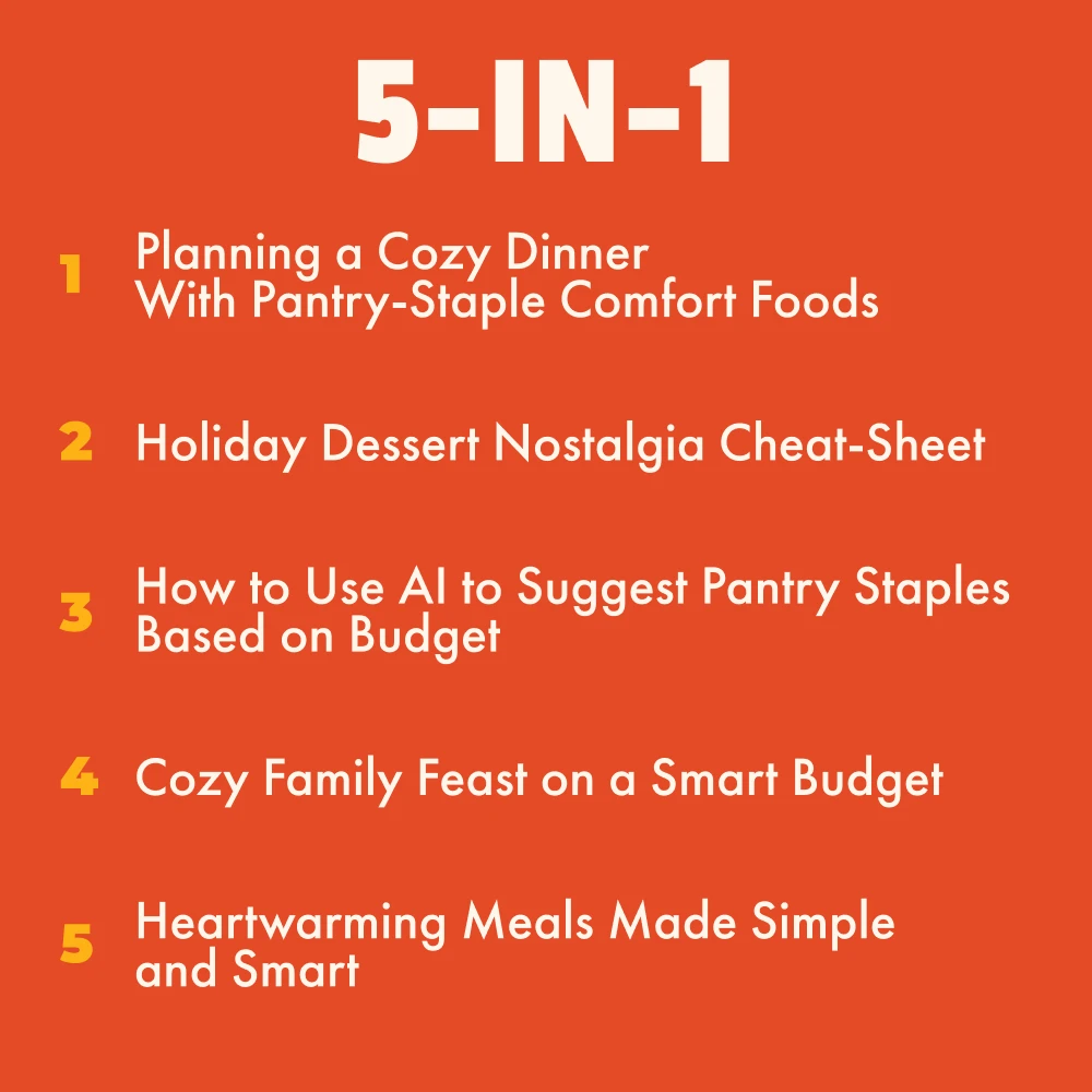 Cooking cozy family feasts on a smart budget has never been easier thanks to this digital bundle! From planning dinners using staple foods we already own, recreating nostalgic holiday desserts or getting AI's help in choosing the best pantry ingredients; every aspect of meal prep becomes simpler and more cost-effective