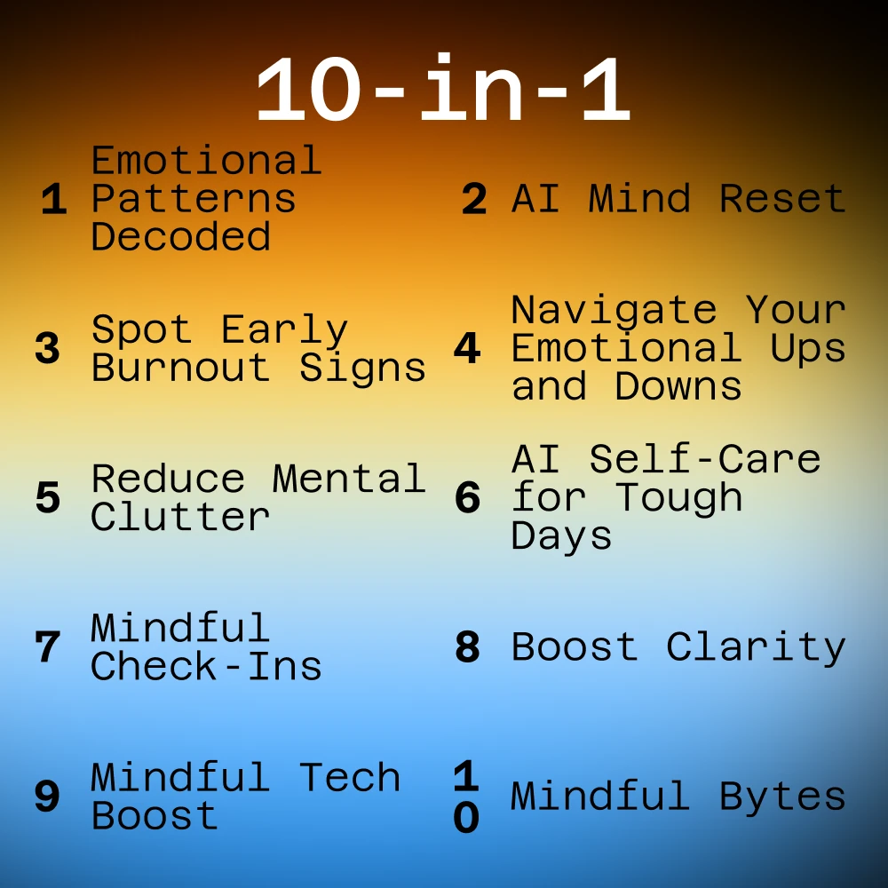 Unlike generic wellbeing resources, this toolkit blends emotional intelligence with practical AI use in a mindful, non-overwhelming way. Instead of pushing productivity or perfection, it focuses on awareness, balance, and sustainable mental habits you can actually maintain.
