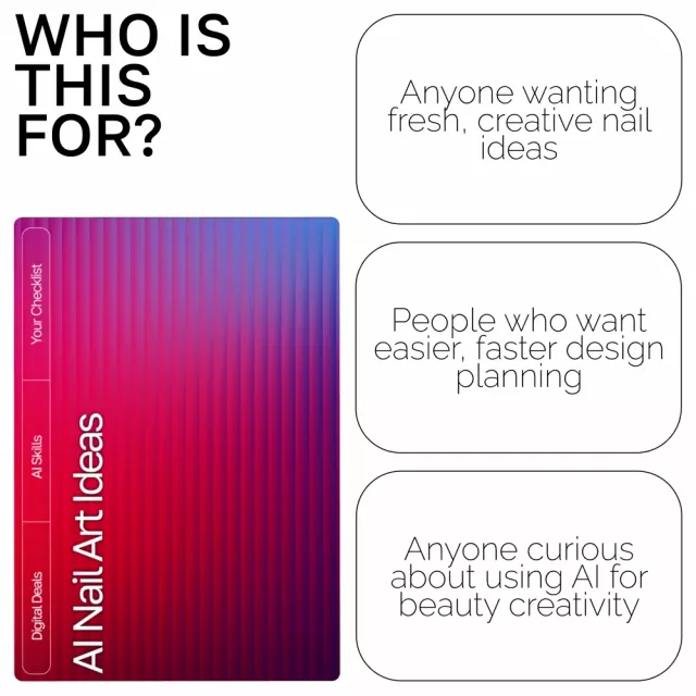 DIY nail enthusiasts, beauty content creators, nail techs, salon owners, or anyone excited to explore nail art through the lens of AI innovation.