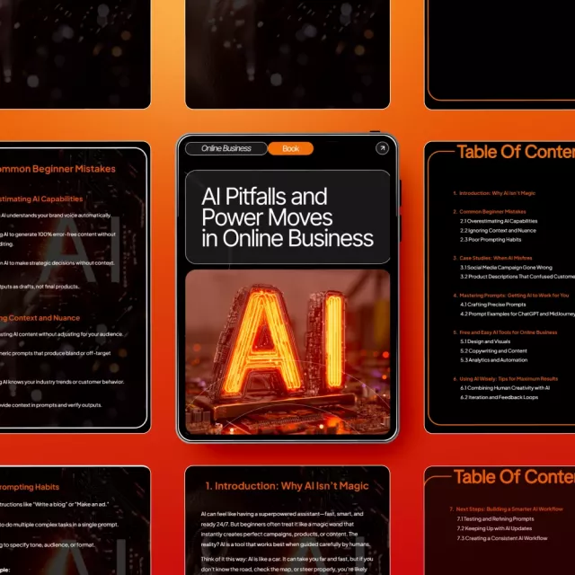 Unlock the real power of AI in your online business with AI Pitfalls and Power Moves in Online Business—a practical, easy-to-follow eBook designed to help you avoid costly missteps and finally use AI with confidence. Whether you’re just getting started or looking to sharpen your digital strategy, this guide shows you exactly how to steer clear of common errors (including the most frequent ai mistakes beginners make in online business) and turn AI tools into true growth engines. Written in a clear, human-friendly tone, this resource helps you transform confusion into clarity and overwhelm into action.