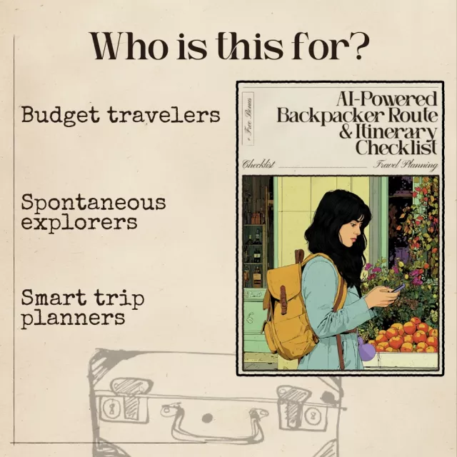 This checklist is made for travelers who crave freedom and exploration without the chaos of disorganized planning. Perfect for backpackers, solo explorers, digital nomads, or anyone ready to hit the road with structure and spontaneity combined. If you’re looking to learn how to use ai for backpacker travel routes itineraries to travel smarter and see more of the world, this is your ultimate companion.
