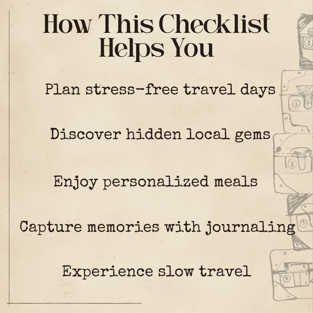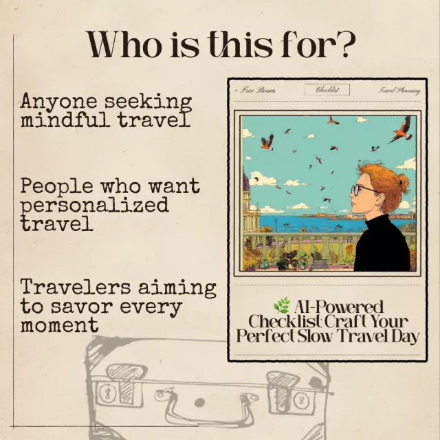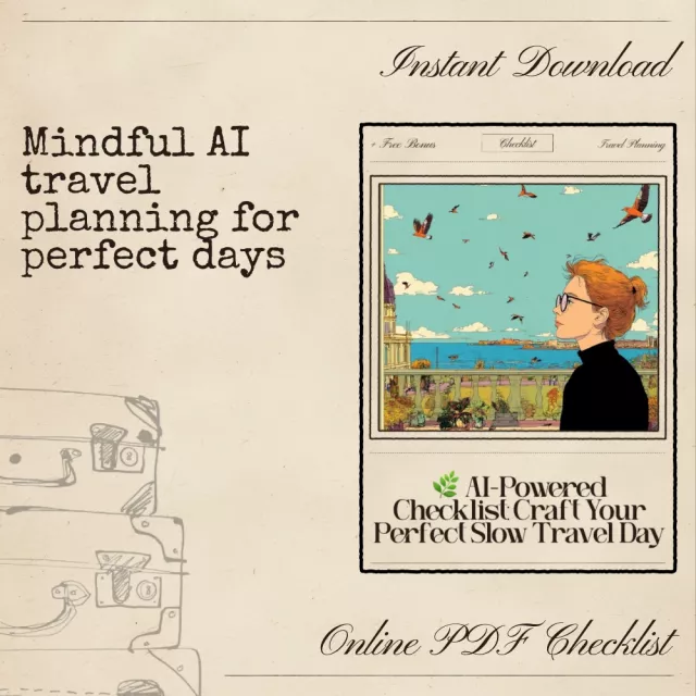 Download your AI-Powered Checklist: Craft Your Perfect Slow Travel Day now and begin curating mindful, intentional travel experiences. Let AI help you make every morning magical, every meal memorable, and every evening peaceful. Embrace slow travel and transform the way you explore the world.