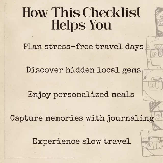 Unlike typical travel itineraries, this guide, eBook, and checklist is crafted for travelers who value quality over quantity. It integrates AI technology to create personalized, adaptable experiences rather than rigid schedules. Whether you’re new to slow travel or a seasoned explorer, this resource ensures every moment is meaningful, stress-free, and memorable.