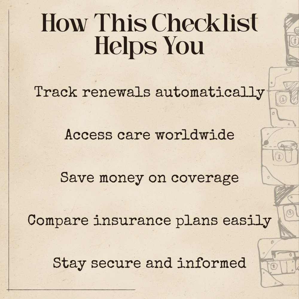 This checklist is perfect for long-term travelers, digital nomads, remote workers, and world explorers who want reliable, stress-free health coverage that adapts to their lifestyle. It’s also a great fit for anyone new to AI tools and looking to make smarter, faster, and more affordable health insurance decisions while abroad.