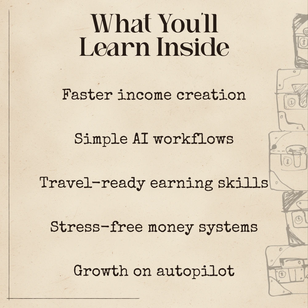 Unlike generic travel-income guides, this resource focuses entirely on practical, real-world ways AI can streamline your workflow, speed up earning, and help you build sustainable income streams anywhere. It’s simple, actionable, and crafted specifically for people who want to leverage ai for earning money while traveling without needing technical skills.