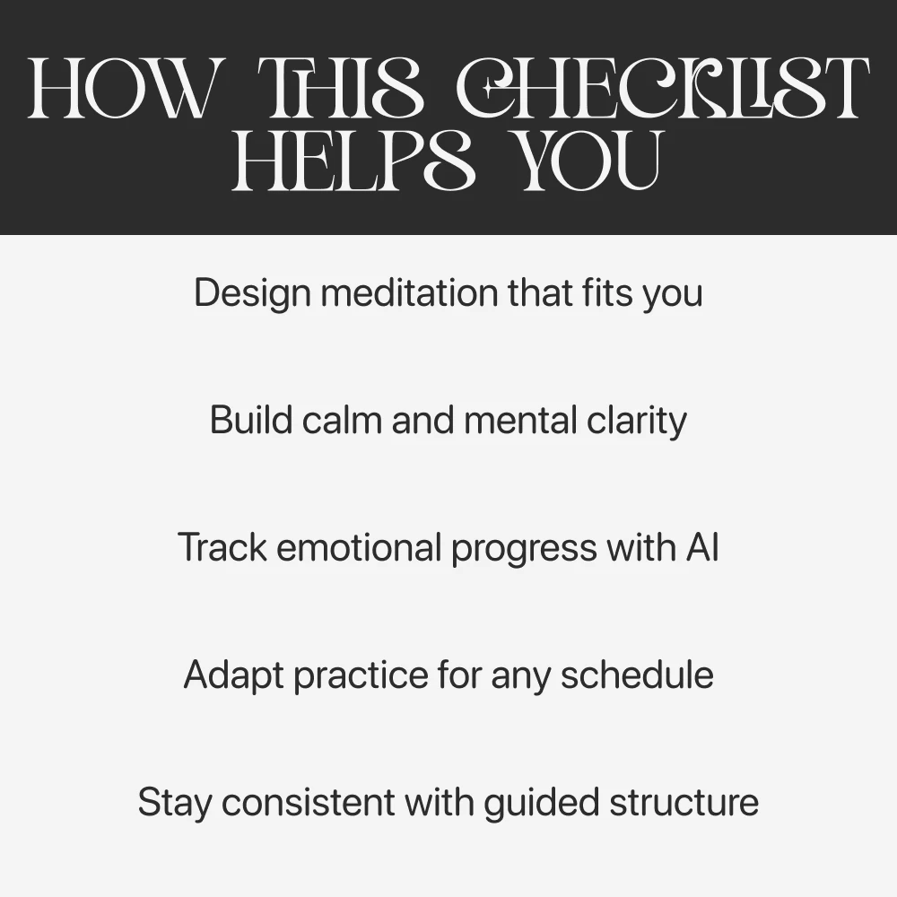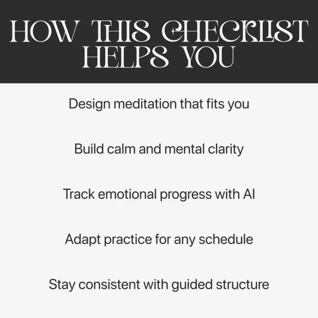 If you’re ready to take control of your mental well-being and finally build a meditation routine that feels natural and sustainable, this is for you. Download the AI-Powered Meditation Plan checklist today and discover a more focused, calm, and balanced version of yourself – guided by clarity, not confusion.