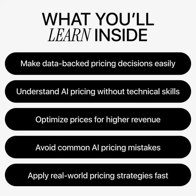 Unlike generic AI or pricing books, AI-Powered Pricing focuses on real implementation. It combines strategy, case studies, and actionable tools so you can move from learning to doing with confidence.