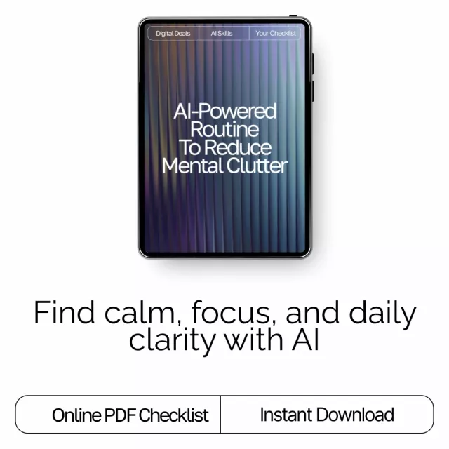 Start fresh with AI-Powered Routine to Reduce Mental Clutter. Download your checklist now and build a calm, AI-supported daily flow that helps you stay organized, intentional, and mentally light—one clear day at a time.